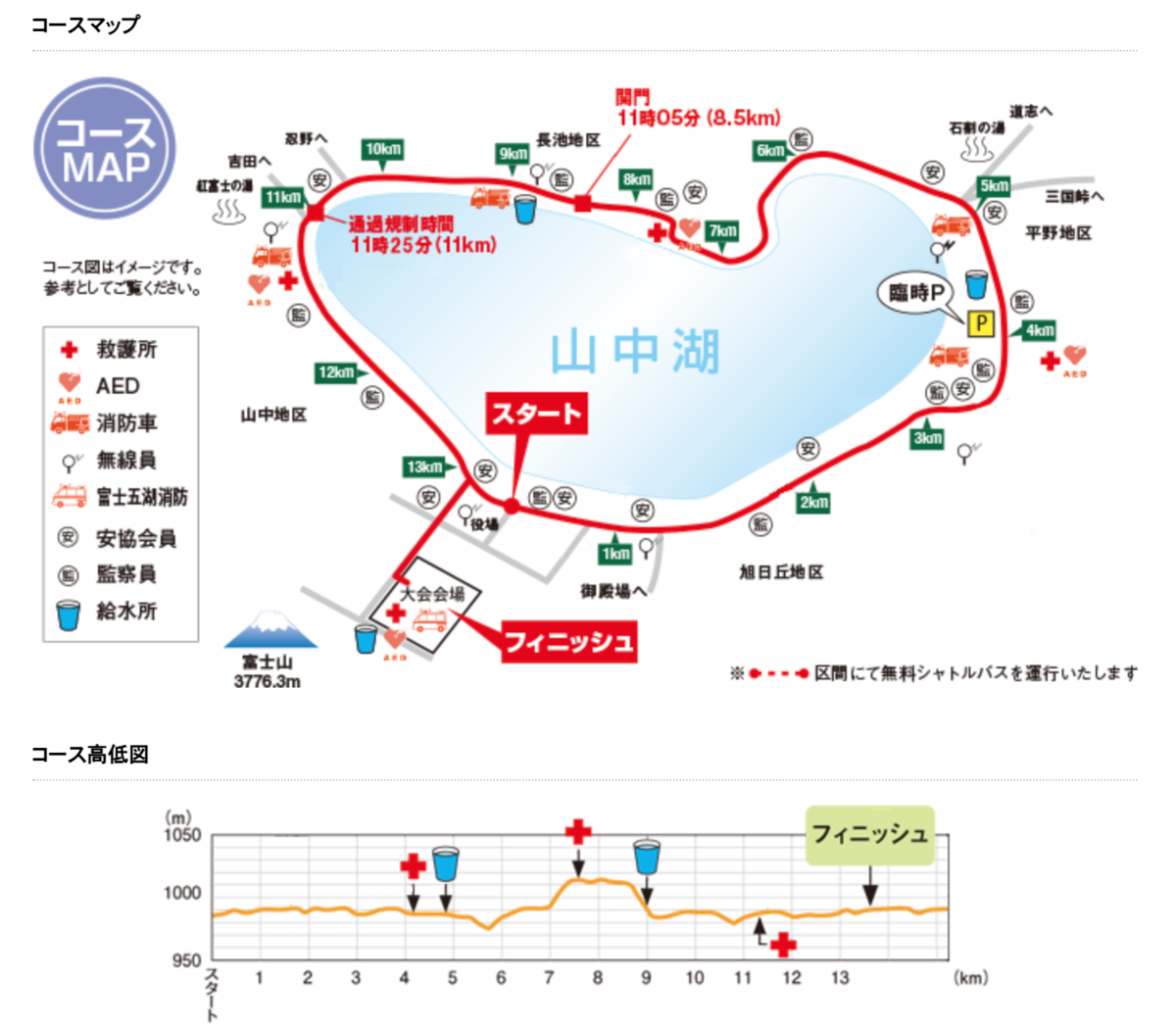 (出典:コースガイド | 山中湖ロードレース 〜残雪の富士山と初夏の青葉に包まれる山中湖で走るマラソン大会〜