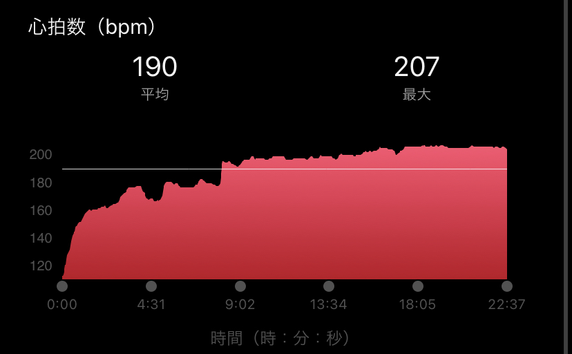 心拍数も3:45/kmを超えたペースで走ると200まで上がってしまい、すぐにバテてしまいます。