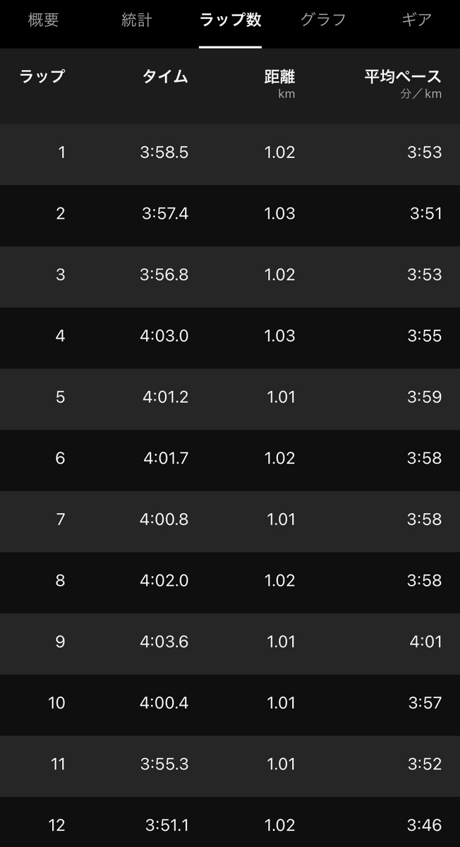 やっぱり今の身体で4:00/kmのペースは少しキツかったですが、無事にメニューやり切れて安心してます!