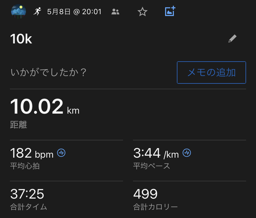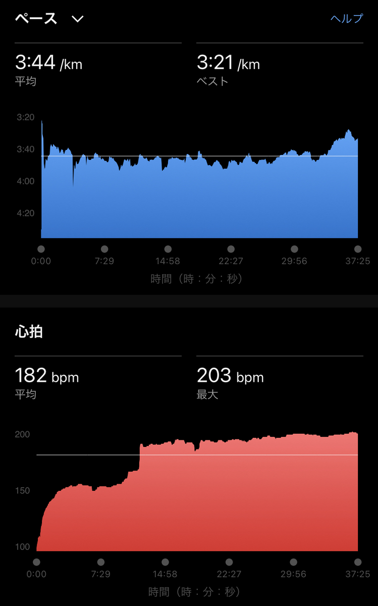 ログを見てびっくりしたのは、心拍数200超えて15分以上走っていたこと笑