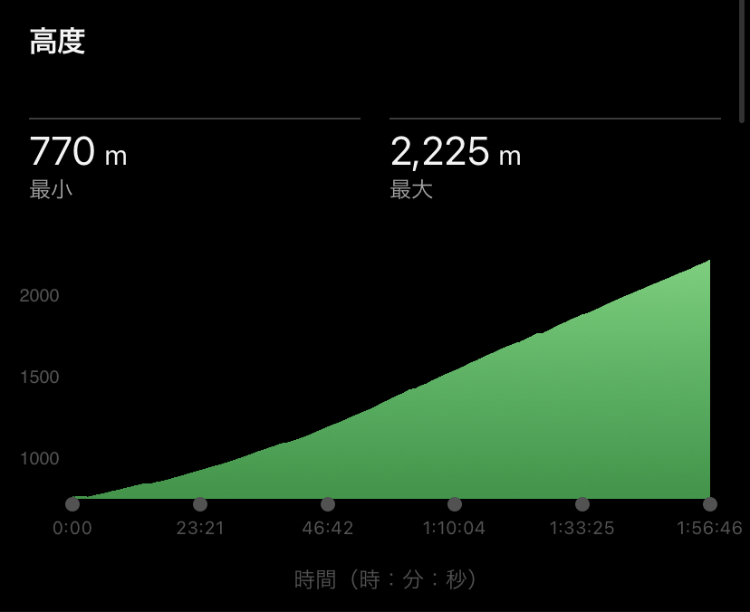 タイムは自分の時計で1時間56分46秒!(馬返しラップが1時間3分ぐらい)