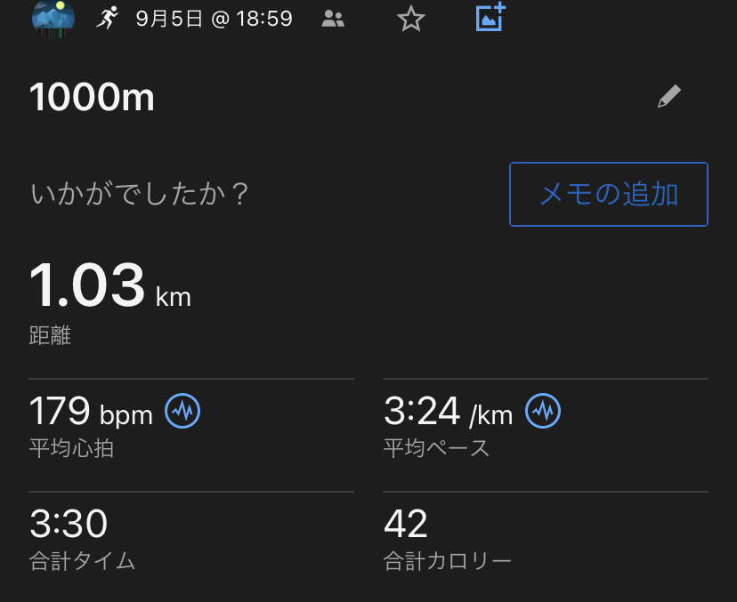 トレランレース前にジョグと刺激に1000m1本!