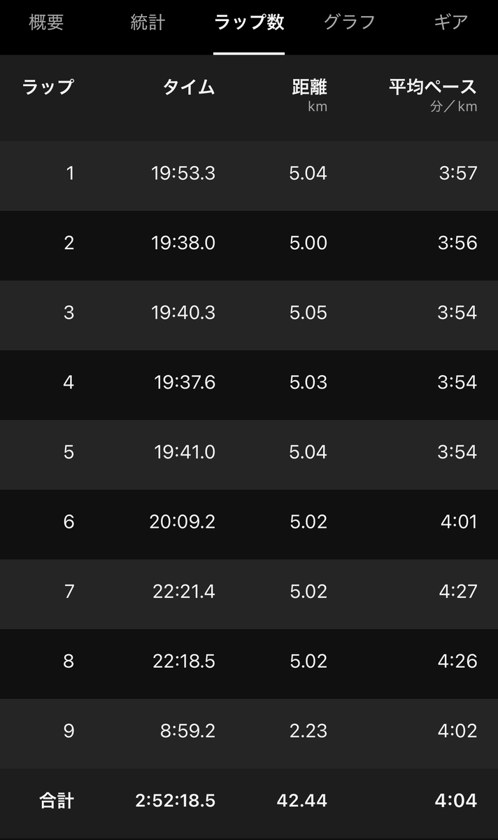 おそらく、思っていたより暑くて前半発汗が多かったので、それが影響したのかなと考えています。