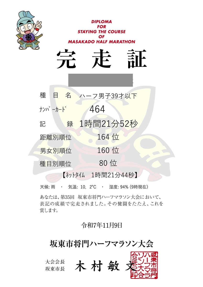 【第35回 坂東市将門ハーフマラソン】マラソンシーズン前の位置確認にベストな大会![記録 1:21:44]